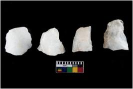 | Description / विवरण | A specimen of a fluted core having several broad fluted marks indicating the detached blades from it |