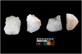 | Description / विवरण | A specimen of a fluted core having several broad fluted marks indicating the detached blades from it |