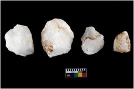 | Description / विवरण | A specimen of a fluted core having several broad fluted marks indicating the detached blades from it |