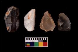 | Description / विवरण | Four flakes; most of them are tapering at one end with few having sharp edges. |