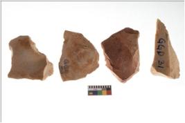 | Description / विवरण | Four worked flakes, some are tapering at one end. Most of them are having sharp edges. |