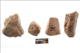 | Description / विवरण | Specimen of fluted cores showing impressions of blades removed from almost all the sides. |