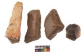 | Description / विवरण | There are n-4 of utilized flake cores. There are multidirectional irregular dominant scar pattern on both dorsal and ventral face of the cores. Some of them bulge of percussion and some are flat flake cores. |