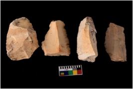 | Description / विवरण | Specimen of fluted cores showing impressions of blades removed from almost all the sides. |