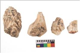 | Description / विवरण | Four worked utilised nodules; all are uneven. |