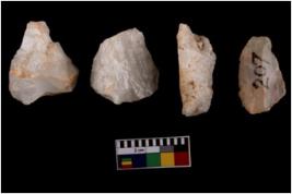 | Description / विवरण | Four worked flakes, most of them are uneven whereas some are tapering at one end. |