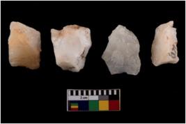 | Description / विवरण | Four worked flakes, most of them are uneven whereas some are tapering at one end. |
