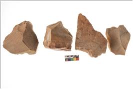 | Description / विवरण | Four worked flakes, most of them are uneven whereas some are tapering at one end. |