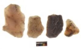 | Description / विवरण | There are n-4 of utilized flake cores. There are multidirectional irregular dominant scar pattern on both dorsal and ventral face of the cores. Some of them bulge of percussion and some are flat flake cores. |