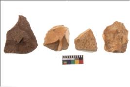 | Description / विवरण | Four worked flakes, most of them are uneven whereas some are tapering at one end. |