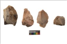 | Description / विवरण | Four worked flakes, most of them are uneven whereas some are tapering at one end. |
