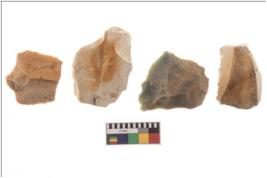 | Description / विवरण | Four worked flakes, most of them are uneven whereas some are tapering at one end. |