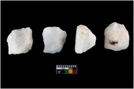 | Description / विवरण | A specimen of a fluted core having several broad fluted marks indicating the detached blades from it |