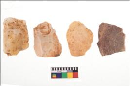 | Description / विवरण | Four flakes; most of them are tapering at one end with few having sharp edges. |