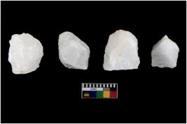 | Description / विवरण | A specimen of a fluted core having several broad fluted marks indicating the detached blades from it |