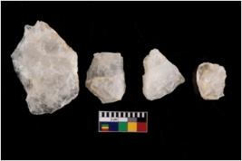 | Description / विवरण | Specimen of a cores with several broad fluted marks. The reverse bulb and platform can be seen. The flake scars are seen on all sides. |