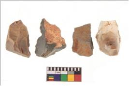 | Description / विवरण | Four flakes; most of them are tapering at one end with few having sharp edges. |