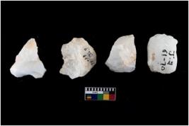 | Description / विवरण | A specimen of a fluted core having several broad fluted marks indicating the detached blades from it |