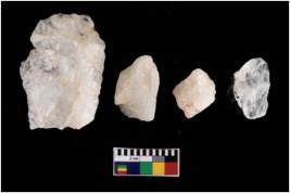 | Description / विवरण | Specimen of a cores with several broad fluted marks. The reverse bulb and platform can be seen. The flake scars are seen on all sides. |