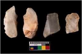 | Description / विवरण | Four flakes; most of them are tapering at one end with few having sharp edges. |