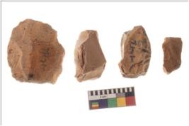 | Description / विवरण | Specimen of fluted cores showing impressions of blades removed from almost all the sides. |