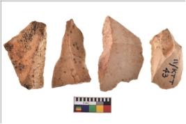 | Description / विवरण | Four worked utilised flakes with sharp edges. Most of them are tapering at one end. |