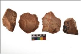 | Description / विवरण | Four worked utilised flakes with sharp edges. Most of them are tapering at one end. |