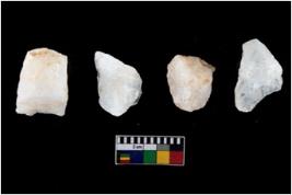 | Description / विवरण | A specimen of a fluted core having several broad fluted marks indicating the detached blades from it |