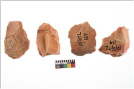 | Description / विवरण | Four worked flakes, some are uneven whereas some are tapering at one end. Most of them are having sharp edges. |