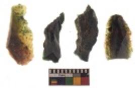 | Description / विवरण | There are n-4 of utilized flake cores. There are multidirectional irregular dominant scar pattern on both dorsal and ventral face of the cores. Some of them bulge of percussion and some are flat flake cores. |