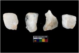 | Description / विवरण | A specimen of a fluted core having several broad fluted marks indicating the detached blades from it |