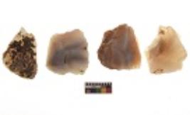 | Description / विवरण | There are n-4 of utilized flake cores. There are multidirectional irregular dominant scar pattern on both dorsal and ventral face of the cores. Some of them bulge of percussion and some are flat flake cores. |