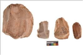 | Description / विवरण | Four fluted cores with impressions of removal of flakes. Some of them are pointed and tapering at one end. |