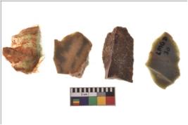 | Description / विवरण | Four worked utilised flakes with sharp edges. Most of them are tapering at one end. |