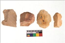 | Description / विवरण | Four flakes; most of them are tapering at one end with few having sharp edges. |