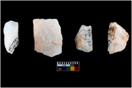| Description / विवरण | A specimen of a fluted core having several broad fluted marks indicating the detached blades from it. |