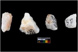 | Description / विवरण | A specimen of a fluted core having several broad fluted marks indicating the detached blades from it. |