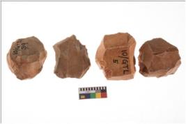 | Description / विवरण | Specimen of fluted cores showing impressions of blades removed from almost all the sides. |