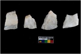 | Description / विवरण | A specimen of a fluted core having many impressions of fluted blades on it. |