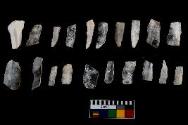 | Description / विवरण | There are n-20 of microliths, among them 12 are quartz, and 8 are of chert. Some of them are partially broken. They show variation in colour, size and shape. Some of them are blunted back blades, points, triangles, trapezes, crescent and truncated blades. |