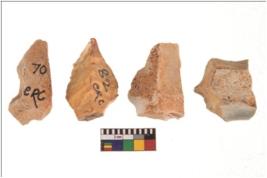 | Description / विवरण | Four flakes; most of them are tapering at one end with few having sharp edges. |