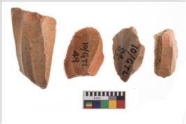 | Description / विवरण | Specimen of fluted cores showing impressions of blades removed from almost all the sides. |
