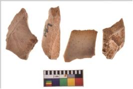 | Description / विवरण | Four worked utilised flakes with sharp edges. Most of them are tapering at one end. |
