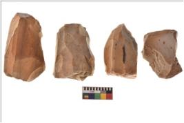 | Description / विवरण | Four worked utilised flakes with sharp edges. Most of them are tapering at one end. |