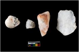 | Description / विवरण | A specimen of a fluted core having several broad fluted marks indicating the detached blades from it. |