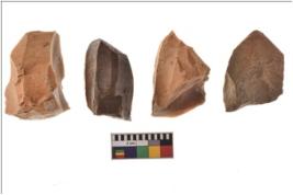 | Description / विवरण | Four worked utilised cores showing impressions of removal of blades. |