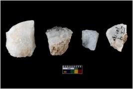 | Description / विवरण | A specimen of a fluted core having several broad fluted marks indicating the detached blades from it. |