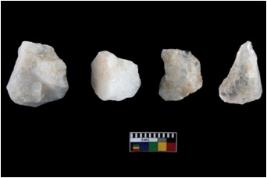 | Description / विवरण | A specimen of a fluted core having many impressions of fluted blades on it. |