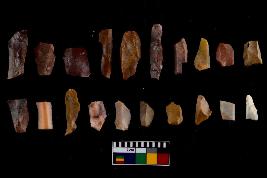 | Description / विवरण | There are n-20 of microliths, all of them are Chert. Some of them are partially broken. They show variation in colour, size and shape. Some of them are blunted back blades, points, triangles, trapezes, crescent and truncated blades. |