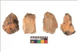 | Description / विवरण | Four flakes; most of them are tapering at one end with few having sharp edges. |